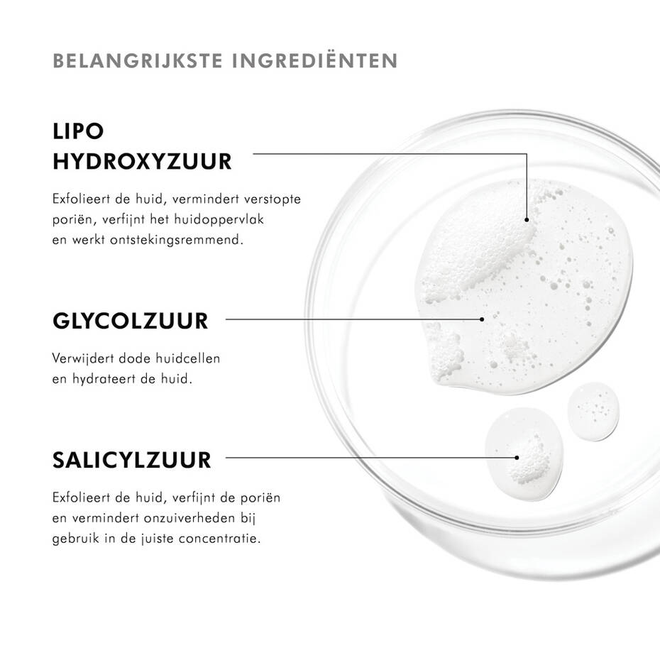 The combination of salicylic acid and glycolic acid not only cleanses the skin but also exfoliates it. This refines skin texture, reduces the appearance of enlarged pores, and leaves skin looking smoother and fresher. The result is a more radiant complexion with a more even tone.